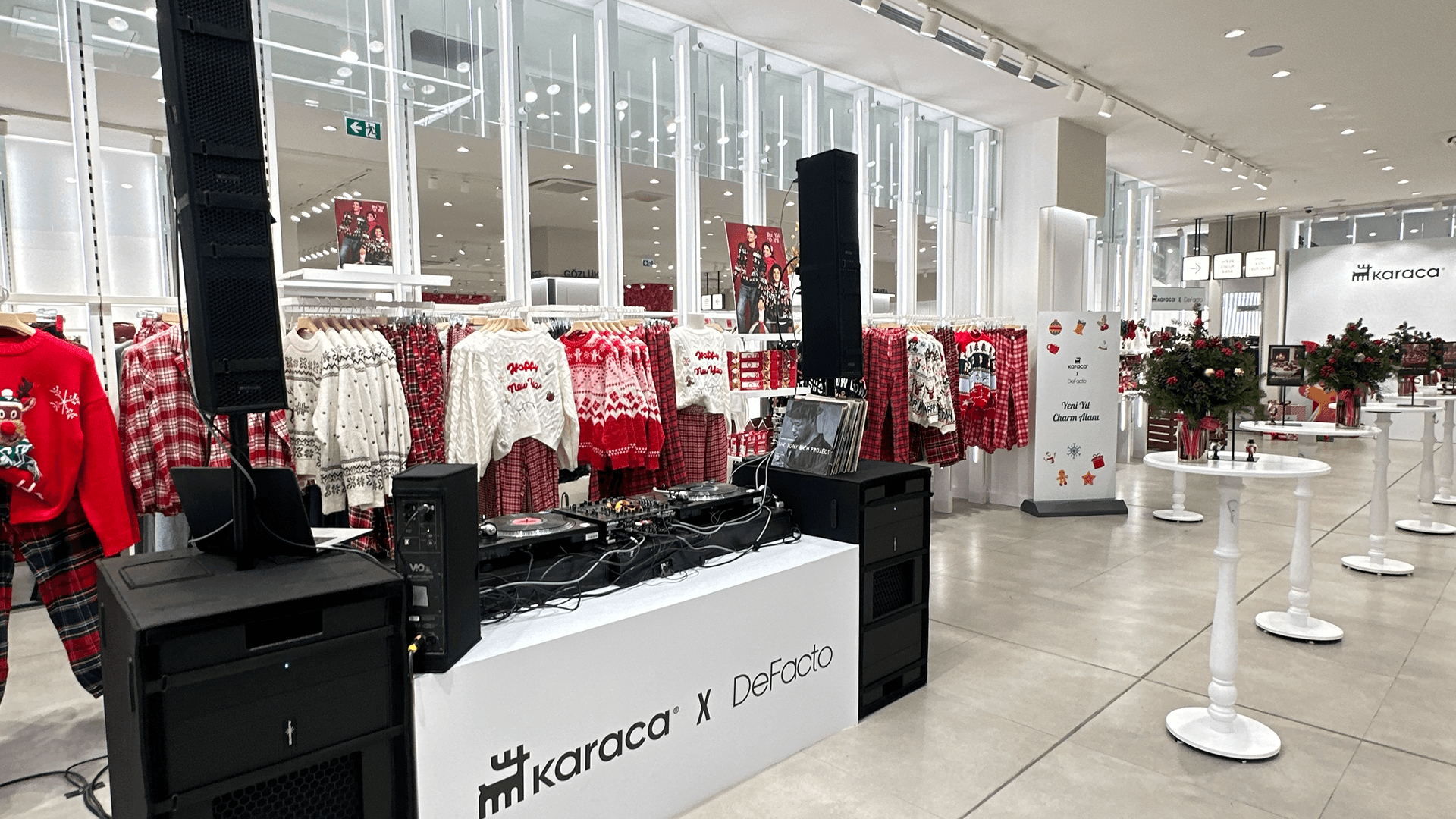 Karaca x DeFacto kreasyonu, etkinlik alanında özel sergileme alanlarıyla davetlilere sunuldu. Yılbaşı temalı dekorasyon, ürünlerin estetik dilini güçlendirirken davetlilerin koleksiyonla doğal bir bağ kurmasını sağladı.